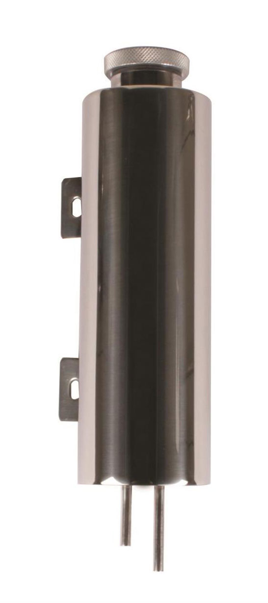 Allstar Radiator Recovery Tank Attractive stainless steel construction Tank height of 10″ with a diameter of 3″ Short tube is radiator recovery hose, long tube is for venting tank Mounting hardware included 35oz capacity