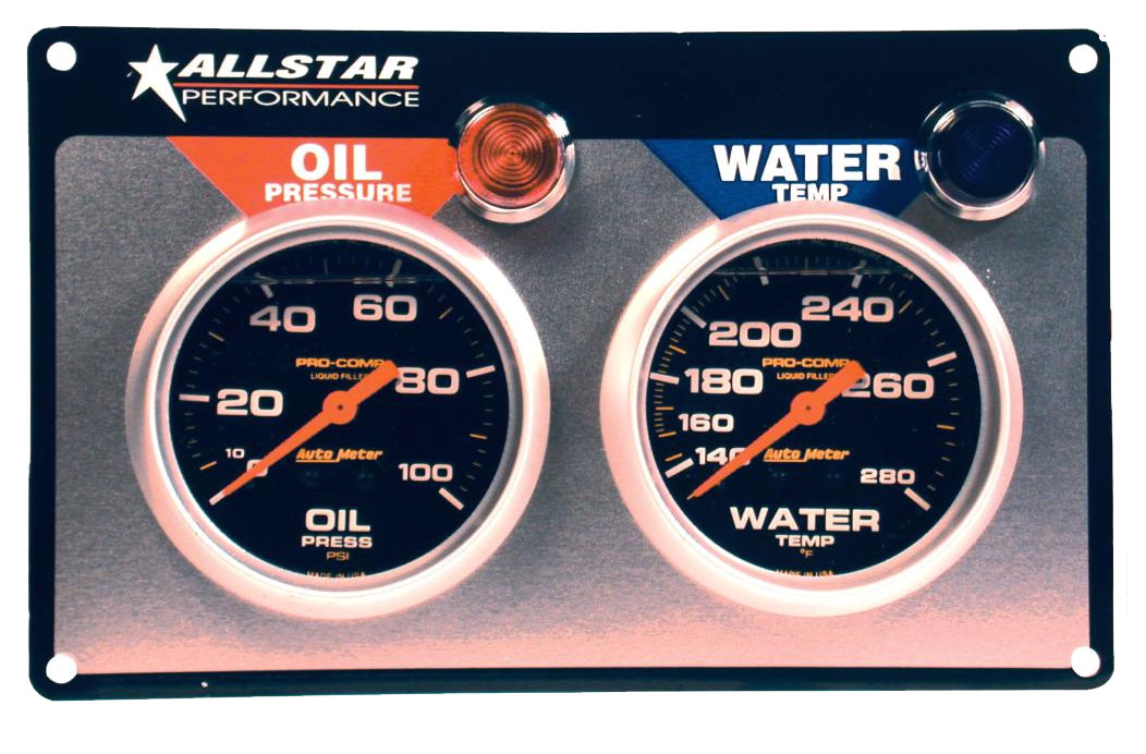 ALLSTAR AUTOMETER 2-5/8″ Mechanical Gauge panels are completely assembled, pre-wired with warning indicator lights and senders to alert you of problems Detailed instructions and installation template inlcuded Panel is 4-1/2″ tall x 7-1/4″ wide