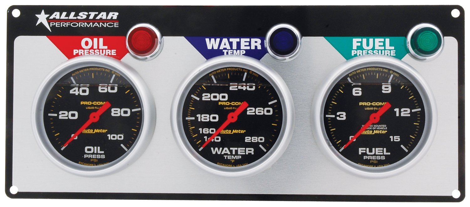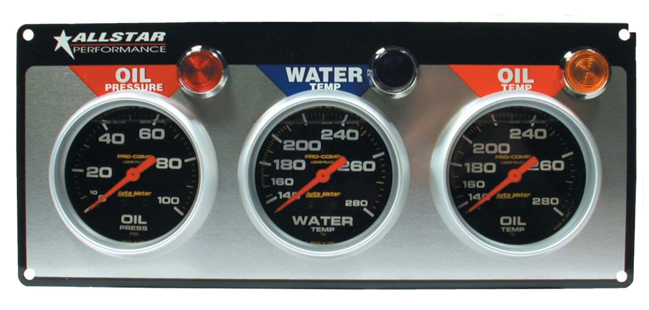 ALLSTAR AUTOMETER 2-5/8″ Mechanical Gauge panels are completely assembled, pre-wired with warning indicator lights and senders to alert you of problems