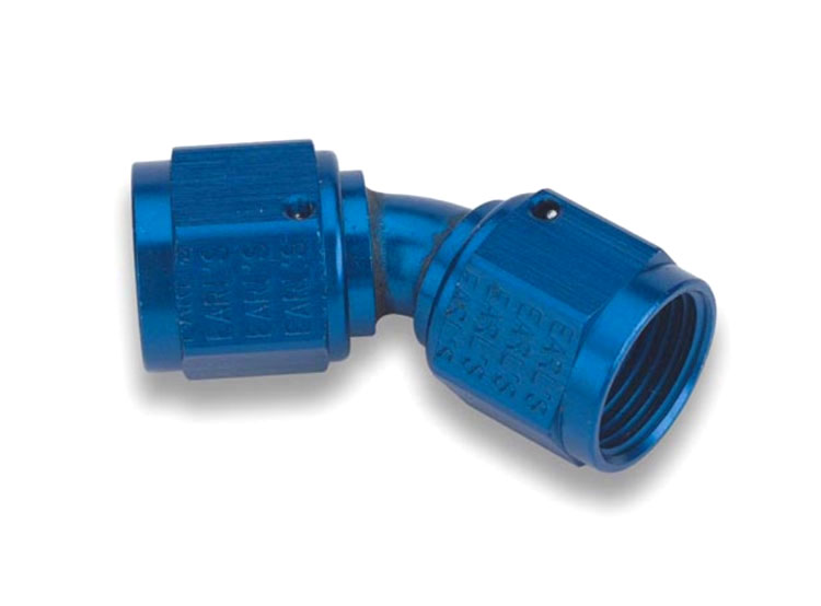 EARLS AN Swivel Coupler Fittings are precision machined from aluminum, then anodized blue for great looks and durability.