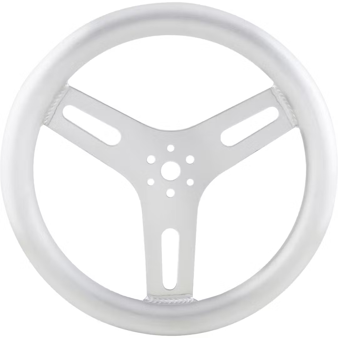 13″ Alloy Flat Steering Wheel 1/4″ and 5/16″ bolt mounting holes The finger nubs are spaced 1″ apart for a secure grip