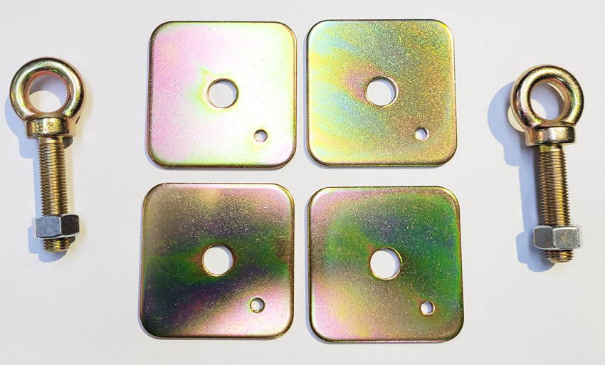 Eye Bolt kit for harness/seat belt mounting – MSNZ Legal 2x Eye Bolts, 4x 65mm Square Top/Backing Plates, 2x Nuts included 50 mm Thread length 7/16″ UNF 65mm x 65mm Square Top/Backing Plates (MSNZ approved) Grade 8.8