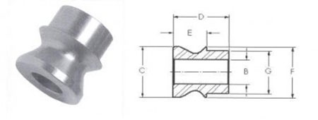 Dimensions for 3/4″ – 5/8″ – B:0.625″. C:0.950″. D:0.923″. E: 0.50″. F:0.950″. G: 0.749″.