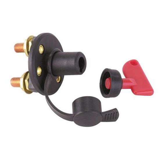 Durable plastic battery kill switch with removable red key. This battery disconnect switch is a two post design. Battery shut off switch can be remote mounted or where specified for saftey and convenience.