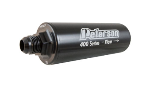 Peterson’s 400 series filters feature a 7″ by 2.5″ body and pleated elements for high flow