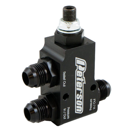Peterson’s remote oil pressure relief valve enables the racer to adjust oil pressure on engines where the rules require that the oil pump be in its stock location in the pan. It can also be used in external pump applications to make the pressure adjustment more accessible.