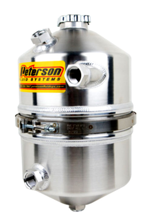 Peterson 3 Gallon Oil Tank Single Scavenge Inlet 16″ Height 9″ Diameter Inlet: -12AN Female Outlet: -12AN Female Breather: -12AN Female Drain: -6AN Female, Bung included Remote Primer Provision: No