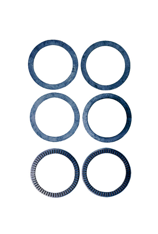 2-1/2″ Kit includes 2x Roller Thrust Bearings, 4x Washer Shims (set of two)