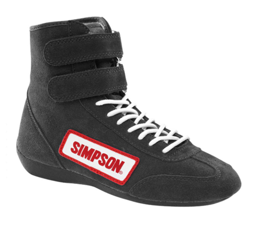 Simpson Hi-Top Shoe is a new take on our classic style with a high-top design and satin suede upper Inner fleece lining is fire retardant Outer sole is a non-slip, super-sensitive polyurethane sole with posi-grip traction SFI 3.3/5 approved