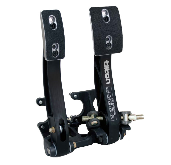 Tiltons 72-603 3-pedal and 72-604 2-pedal floor mount assemblies features traditional fixed-mount master cylinder and balance bar technology and provide excellent performance at competitive prices Brake Clutch and Accelerator Forged aluminum pedals with adjustable (vertical & horizontal) foot pads and anti-slip surfaces Adjustable pedal ratio (5.29-1 5.44-1 5.61-1 5.75-1) enable the brake pedal to be tuned to driver preference without having to change master cylinder bore size. Large diameter 7/16-20 balance bar provides maximum rigidity PTFE coated aluminum clevises for increased durability and reduced friction Pedal pivots feature wave washers to reduce lateral pedal movement and oil impregnated bronze bushings decrease stiction Lightweight aluminum frame features guide ramps to reduce balance bar tipping decreasing friction and improving brake repeatability Adjustable clutch pedal stop prevents clutch over-stroking.